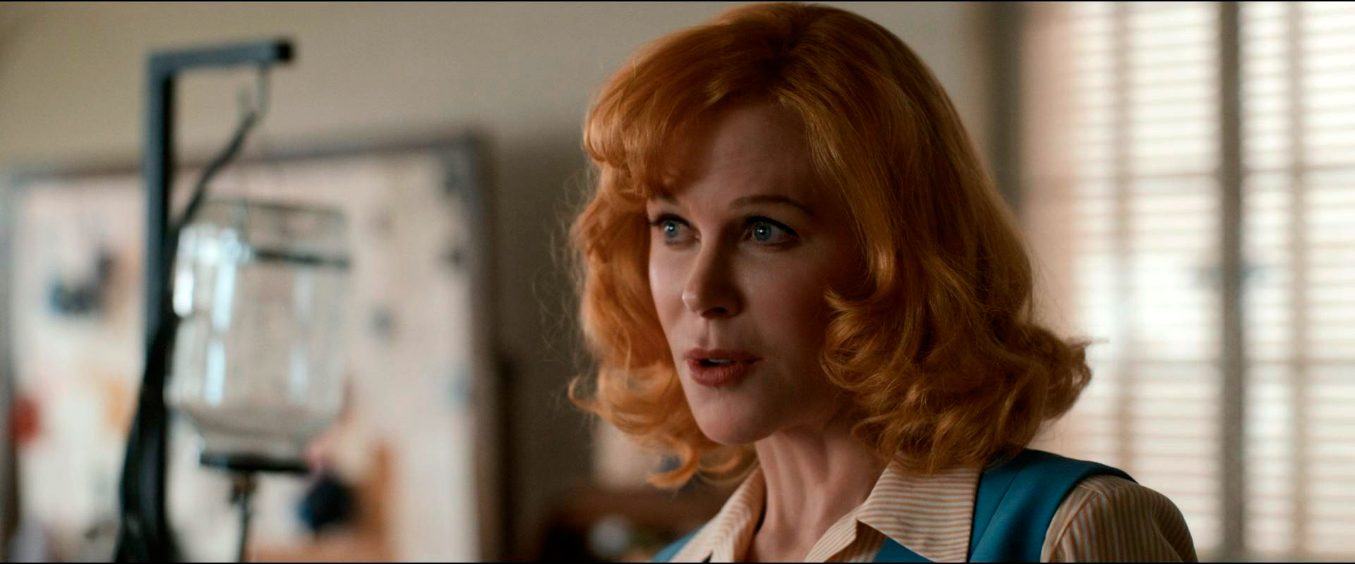 Главная проблема данного действительно незаурядного фильма, который, сразу скажу, мне очень понравился - это подбор актрисы на роль Люсиль Болл. И дело даже не в том, что реальной Люси в описываемый момент было 42 года, а играющей ее Николь Кидман было 54 года - это как раз ни разу не проблема, хотя явные следы пластических операций, которые сделала Николь, уже очень мешают воспринимать ее в роли тех или иных персонажей: например, ее королева Гудрун в "Варяге" - это просто какой-то позор для постановщика.