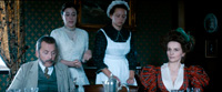 Но эта сцена на самом деле довольно четко укладывается в понятие гиньоля - парижского театра ужасов, где сатира соседствовала с совершенно отвязным хоррором, где ничто не было слишком ужасным или слишком кровавым.