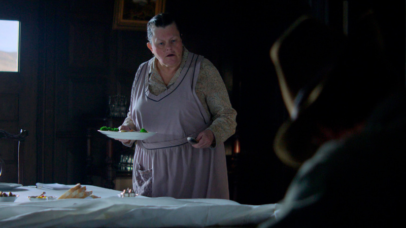 Питер работал официантом во время ужина, а так как он парень очень странный, нескладный и несуразный, ковбои стали издеваться над ним, причем в издевках, как обычно, тон задавал Фил.