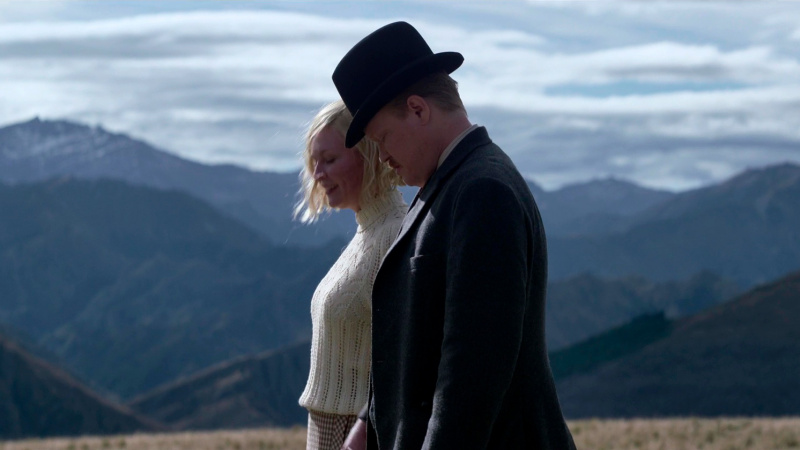 И вот после прочтения романа мне стало понятно, почему фильм получился именно таким. Да потому что роман - не слишком кинематографичный. Его очень сложно перенести на киноэкран, потому что в нем подробно объясняются многие вещи, которые невозможно показать. Постановщица Джейн Кэмпион это, видимо, понимает, поэтому по максимуму и с большим мастерством использует различные визуальные решения, также здесь прямо-таки выдающийся саундтрек от гитариста Radiohead Джонни Гринвуда (он же писал музыку к шедевральной картине "Нефть" Пола Томаса Андерсона) - ну то есть она пытается заполнить визуальными и аудиокомпонентами то, что не получается объяснить киносредствами. Не закадровый же голос ей пускать, который бы объяснял всякие тонкости, - тогда он должен был бы бормотать практически весь фильм.