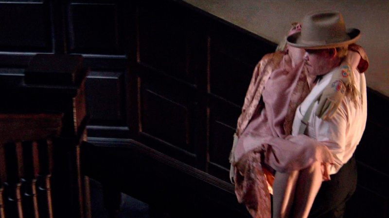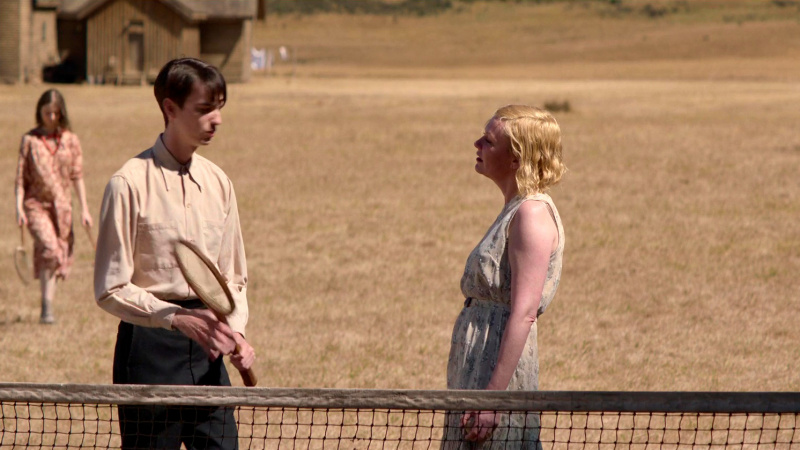Потом Джордж женился, Роуз появляется в особняке на ранчо, Фил ее начинает изводить - и опять не очень понятно, зачем нам это все показывают. Ну разве что история с фортепьяно, которое Джордж притащил в особняк, чтобы Роуз услаждала слух гостей музицированием, а она играет довольно плохо, слегка оживляла ситуацию.