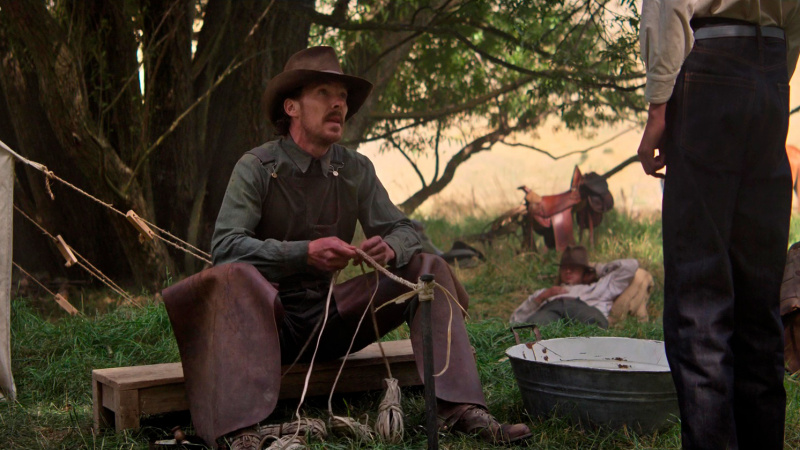 Казалось бы, все составляющие хорошего фильма налицо. Ан нет! Всю первую половину фильма я вообще не понимал, что за историю нам рассказывают, а главное, почему некоторые персонажи себя так ведут. Вроде богатейшее семейство, особняк, который без раздумий посетит губернатор штата (там будет такая сцена), умница Фил, выпускник университета, человек начитанный и образованный, но при этом он работает на самых тяжелых работах, одевается как ковбой, ведет себя как ковбой и воняет как ковбой. Зачем, почему? Непонятно. При этом Фил постоянно рассказывает истории о каком-то - судя по всему, давно почившем - Бронко Генри, который был лучший наездник, лучше всех кидал лассо, - а кто он был для Фила - наставник ли, более близкий друг или еще кто-то - также непонятно совершенно.