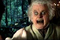 Бильбо (Йен Хольм) - просто блеск! Хольм великолепно сыграл этого хоббита, а сцена, когда он с огромным трудом пытался расстаться с кольцом - сделана великолепно. Есть еще вторая потрясающая сцена, когда Фродо встречается с Бильбо уже у эльфов (кто смотрел, тот понимает, о чем идет разговор), но там уже комплименты следует адресовать создателям спецэффектов.
