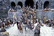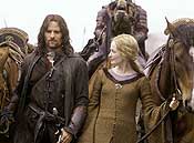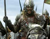 Отвратительные там батальные сцены. Вплоть до мелочей. Например когда Арагорн лезвие в лезвие блокирует меч этой, белобрысой, как ее... не помню. Эовен?