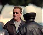 Со стилем они тоже перемудрили. Тут, ребята, одно из двух. Или вы снимаете высокопафосную историю о борьбе с терроризмом, либо же вы снимаете традиционный шварцевский боевичок, где не сильно важно, как ему это все удается сделать, а важно то, как Арни "хитро" прищуривается перед тем, как сломать "главному" шею. В первом случае нужно хоть как-то следить за достоверностью. Потому что иначе пафос пропадает. Во втором случае нужно к черту убирать пафос, который просто неуместен, и следить за Арни, чтобы он в нужный момент поворачивал голову в нужном направлении.