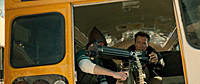 "Майк Фигарола, получивший незначительную травму плеча после прямого попадания в его машину из базуки" - вообще-то в него попали из ружья после того, как...