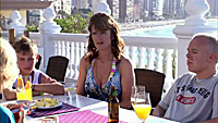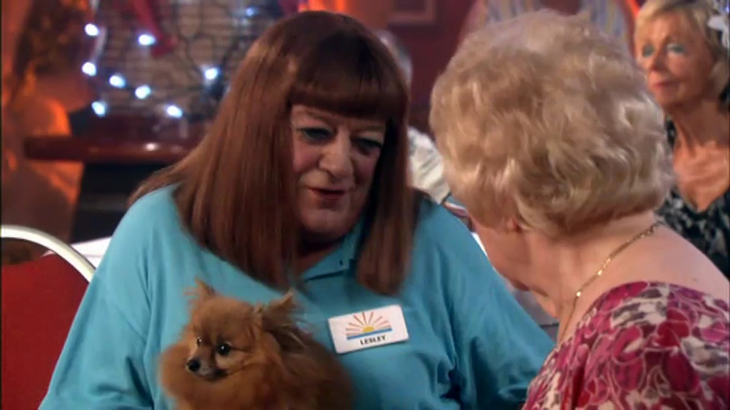 Кроме того, сценаристы постоянно вводили новых колоритных людей, и они очень оживляли сериал. Например, в третьем сезоне появился совершенно крышесносящий персонаж по имени Лесли: это пятидесятилетний лысый британец, любящий одеваться в женское платье и носящий парики. Поначалу он появляется в одном эпизоде, но Лесли - это такой класс, что его с четвертого сезона ввели в качестве постоянного участника: он устраивается на работу в "Солану" и там зажигает только так. Ему также в пару добавили его сына Лиама (Адам Гиллен) - очень тупого, но забавного парнишку.