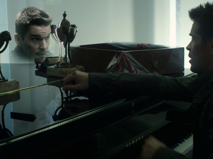 Кстати, насчет разнесчастной "Лунной сонаты" - в нашем прокате он играл вовсе даже не ее, а сонату №17 в Ре-миноре. А вот в режиссерке, которую недавно выложили на торрентах, он сначала тренькает "Лунную", а потом переходит на 17-ю, на которой и срабатывает секрет. Причем в этой версии голографическая голова, разговаривающая с ним, вовсе не Фарелла, а совершенно другого актера. В чем прикол, я так и не понял.