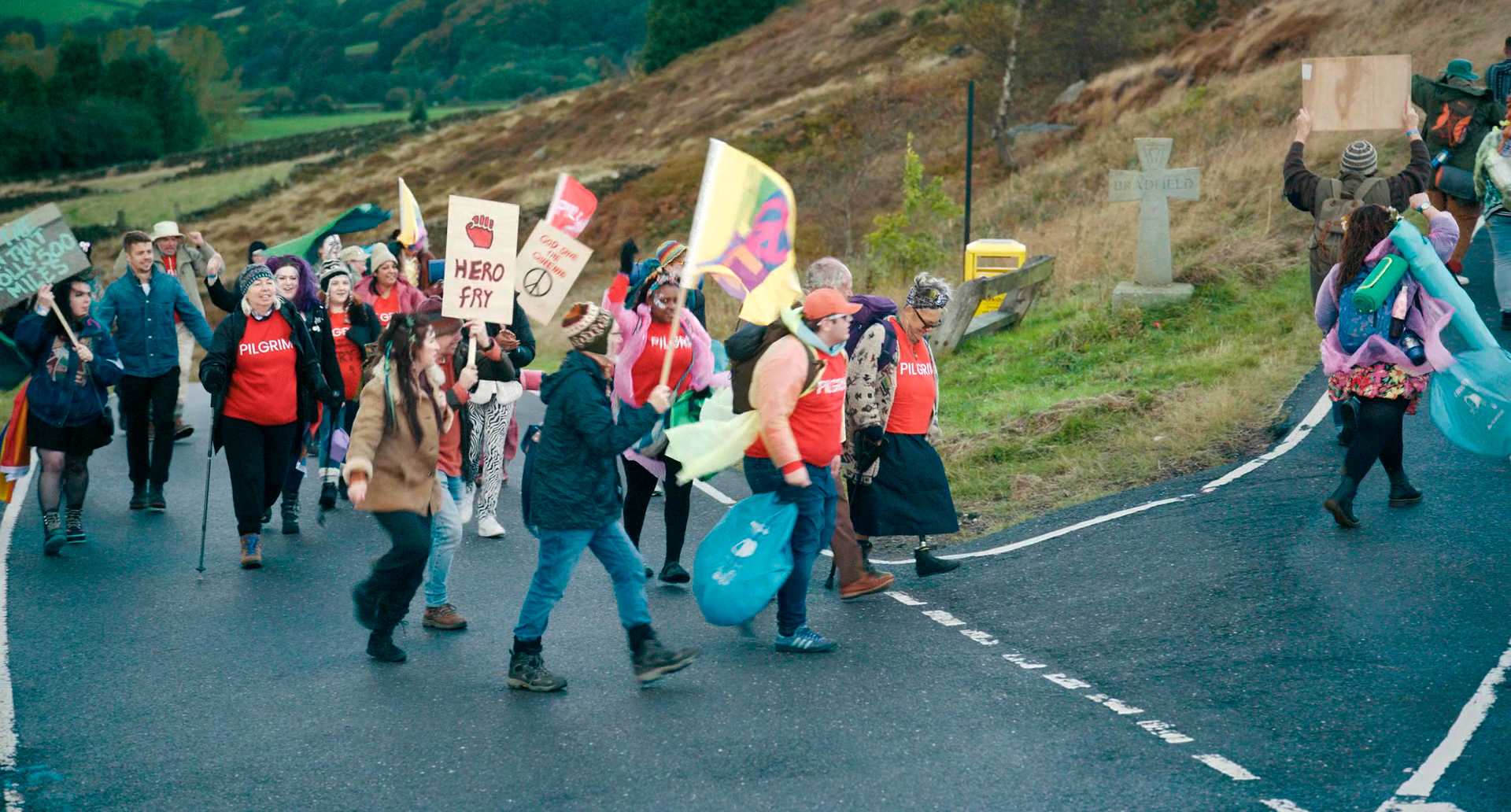 Хорошо показано, как вокруг Гарольда возникают эти "новые пилигримы", среди которых тоже - люди очень и очень разные. Одним просто нравится движуха, другие пытаются найти в этой жизни какую-то цель, третьи и вовсе повинуются стадному чувству. И понятно, что Гарольду со всей этой шоблой довольно быстро становится достаточно некомфортно, а кроме того, они его очень сильно тормозят.
