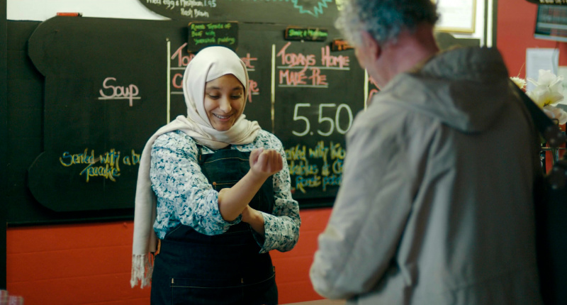 На своем пути он, конечно же, встречает самых разных людей. Далеко не все из них - добрые самаритяне, он может сталкиваться и с достаточно неприятными людьми. Однако попадаются и люди, которые ему здорово помогают - как, например, иммигрантка Мартина из Сербии: она имеет хорошее медицинское образование, но вынуждена работать уборщицей туалетов. Мартину, кстати, играет актриса российского происхождения Моника Госсманн, и я ее помню по фильму "Манк", где она играла эпизодическую, но заметную роль.