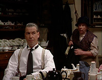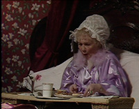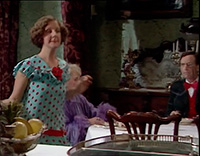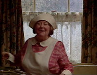 Ну и мать Джона леди Лавендер (Мевис Паг) - давно выжившая из ума старушенция, которая любит махнуть стаканчик джина, поболтать со своим попугаем и швырнуть в горничную тарелкой с едой.