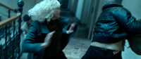 От момента когда героиня Шарлиз с тем мужиком идёт по улице, заходит в дом, выходит, потом погоня, проходит 10 минут. И чуть-чуть недохватило, чтобы это всё непрерывным совсем выглядело. Именно из-за тех двух слишком очевидных переходов из-за затемнения при входе и выходе из дома. Но всё равно очень круто.