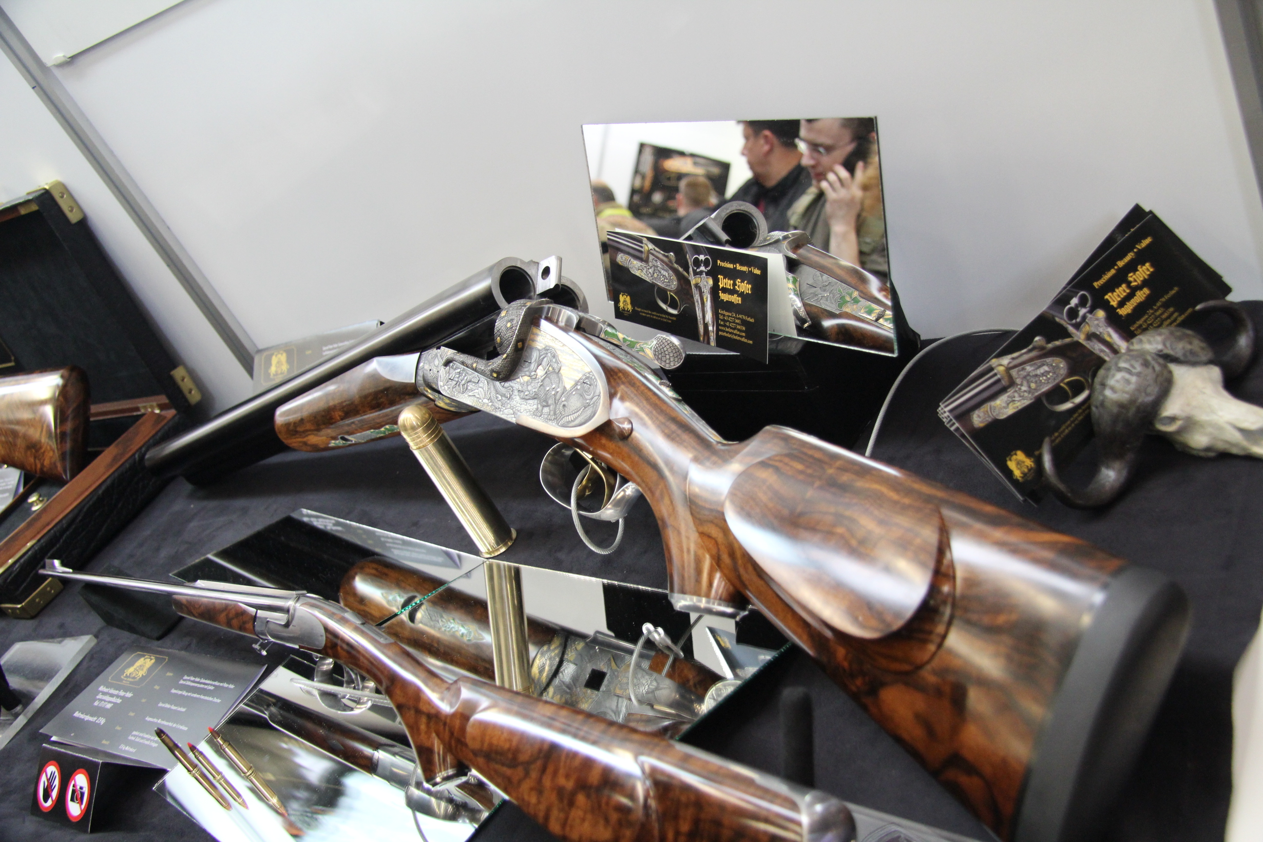 Но....! Такие ружья на самом деле существуют, они сделаны на базе винтажных двустволок, но используют очень толстые нарезные стволы из серъезной стали и ипользуются для африканских охот с калибрами от .500 Nitroexpress и выше - вот пример такого слонобоя (попался мне как-то на одной оружейной выставке), там хорошо видна толщина стенки и патрончик, как в фильме.