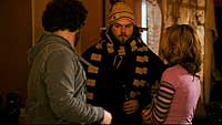 Парочка из Рогена и Бэнкс получилась довольно забавная. Хотя и своеобразная: Бэнкс все-таки, на взгляд многих зрителей и критиков, чересчур симпатична для этой роли - вот как-то не верится, что подобному лузеру-пузану Заку досталась такая красотка, как Бэнкс. Но тут получаются прям две разные актерские школы: Роген вживается в своего персонажа - обаятельного инфантильного толстячка-лузера, а Бэнкс изображает недотраханную инфантильную красотку. Изображает задорно, но все-таки не слишком достоверно. А вот Роген в роли Зака смотрится отлично - впрочем, это вообще его типаж, если вспомнить, например, "Сорокалетнего девственника".