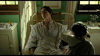 Катинка здесь просто замечательно сыграла - нет ни малейшей фальши или явной постановочности. Просто девочка в больнице, которая с восторгом, упоением, а постепенно и со страхом слушает истории, сплетаемые парнем с мутным подсознанием.