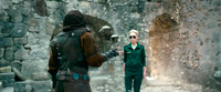 И тут все четверо в моментах, когда им не пририсовывали на компьютерах прозрачность, камнепады, стремительные перемещения или быстрое омедведевание, выглядели очень даже неплохо. Санжар Мади в роли Хана смотрелся сурово, сдержанно и эффектно. Себастьян Сисак в роли Лера - внушительно и трагично. (Кстати, он играет во французском театре, по-русски, как он сам говорил в интервью, почти не говорит, так что его озвучивал Илья Исаев.) Антон Пампушный в роли Арсуса нормально выглядел даже в идиотской сцене с майором Уточкой, то есть прилично сыграл совершенно вопреки, а не благодаря.
