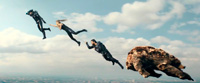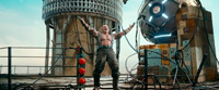 Поставлено это все абсолютно в стиле сюжета - в настолько дуболомно-пафосной манере, что тут даже думаешь: а может, Сарик нам просто такую фигу в кармане показывает? Ведь это не может быть серьезно, это какое-то издевательство, это же вообще детский сад, трусы на подтяжках. Но потом вспоминаешь манеру постановки того же "КарлОсона" и понимаешь, что нет, это просто такой творческий режиссерский стиль.