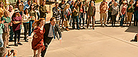 И вдруг Чарльз поставил свой портфель на пол и начал под эти ритмы танцевать свинг. А потом он увидел в быстро собравшейся вокруг этого импровизированного представления толпе пританцовывающую под эти ритмы девушку (Анналиса Бассо), вытащил ее в круг, и они вдвоем выдали шикарный танец.