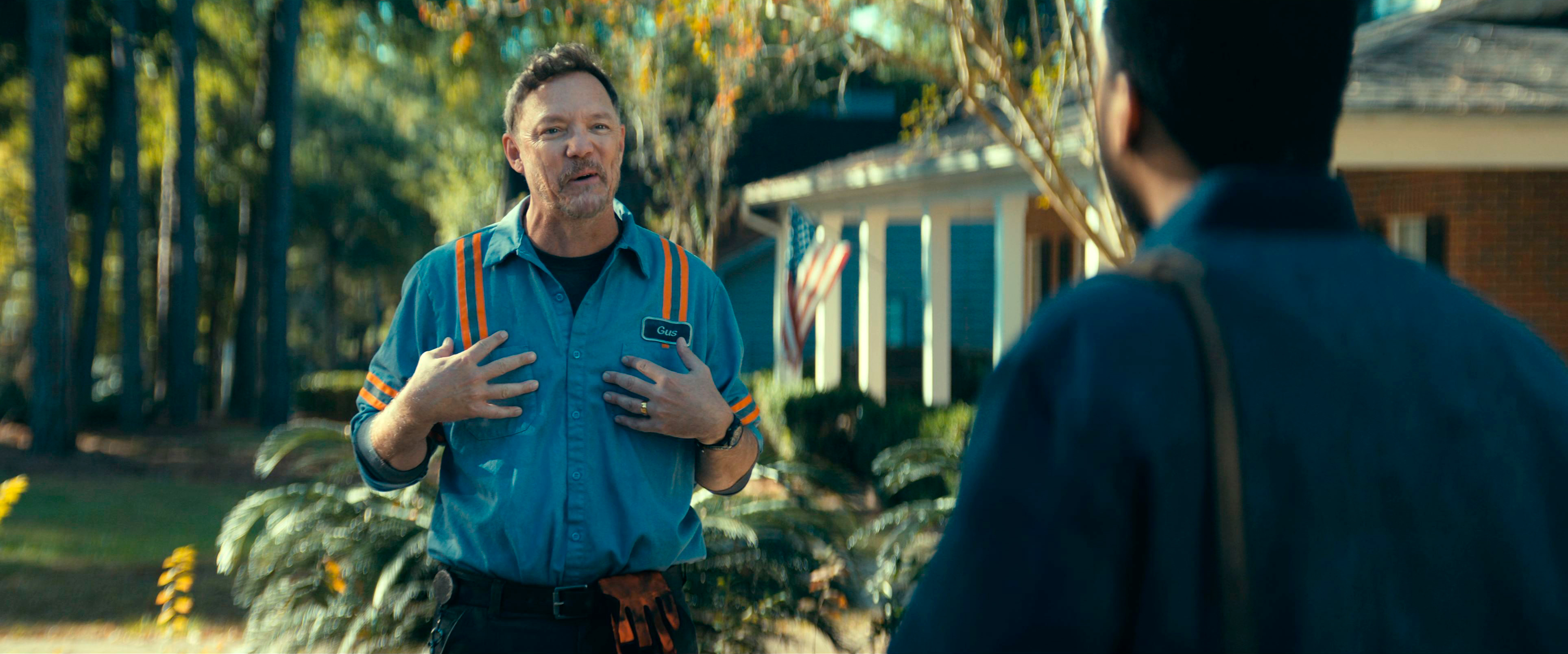 >>Несмотря на то, что в третьем акте нагоняется определенной жути с этим разваливающимся миром (тут сразу вспоминается хороший фильм "Оставь мир позади"), но эти плакаты с каким-то Чарльзом Кранцем как бы намекают на то, что здесь явно что-то не то)