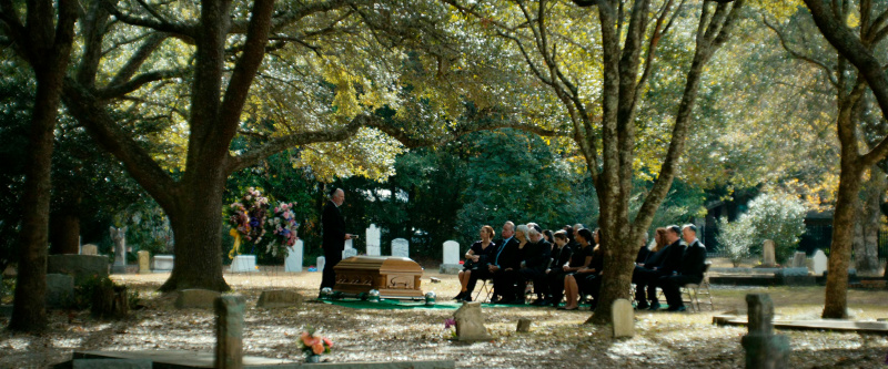Второй и первый акты сопровождаются закадровым текстом с пояснениями, который читает Ник Офферман своим неподражаемым глубоким баритоном. Этот прием, с одной стороны, в кинематографе считается достаточно дешевым, и к нему стараются не прибегать, но у Ника настолько колоритная манера (и в памяти, конечно же, сразу всплывает знаменитая короткометражка The Gunfighter, где загадочный Голос тоже говорил голосом Оффермана), что меня этот прием совершенно не раздражал, и я даже посчитал, что это имело смысл сделать.