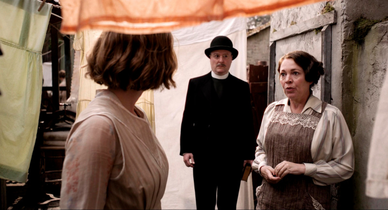 Три главных женских персонажа - Идит, Роуз и Глэдис - отличные, причем каждая по-своему. Оливия Колман в роли Идит - чудесная совершенно. А роль довольно сложная и противоречивая. Поначалу кажется, что Идит - совершенно затюканная своим отцом богобоязненная простушка, однако довольно быстро понимаешь, что за ее показным смирением есть что-то очень и очень лицемерное. И знаменитая улыбка самой актрисы может выглядеть очень открытой и искренней, а может и скрывать что-то нехорошее.
