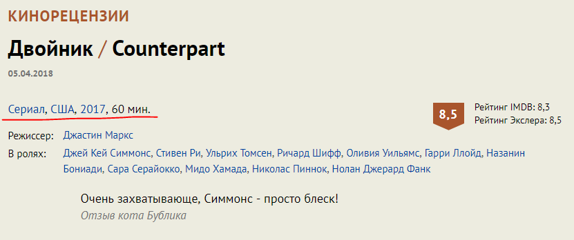 Понятно, что дважды, потому что в рцензиях на иностранные фильмы идет название на русском/оригинальное название. Но тут это смотрится неуместно.