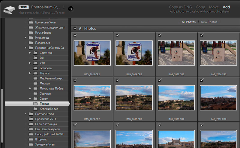 1. Добавление папки с фотографиями в базу Lightroom