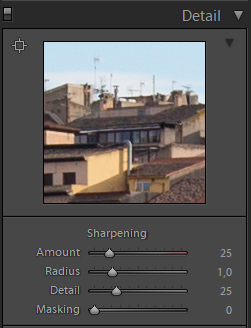 В разделе Detail секция Sharpening позволяет поколдовать с резкостью, для чего там в окошке можно вывести какую-нибудь наиболее характерную часть кадра. Но я резкость правлю крайне редко.
