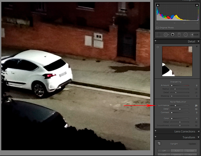 А вот следующая секция Noise Reduction (подавление шума) может быть довольно полезной в случае редактирования ночных кадров, где на высоких ISO может появляться сильный цифровой "шум" (особенно часто это проявляется при съемке на фотокамеры с небольшим размером матриц).