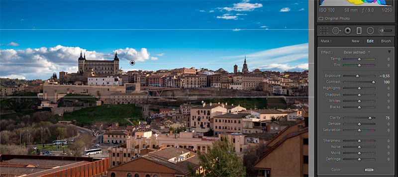 Далее играетесь с различными параметрами фильтра - экспозиция, контраст, четкость, - и можно добиться интересных эффектов. Ну и после того, как вы выйдете из режима работы градиентного фильтра, можно слегка подкорректировать общую цветовую насыщенность и прочие параметры, если это потребуется.