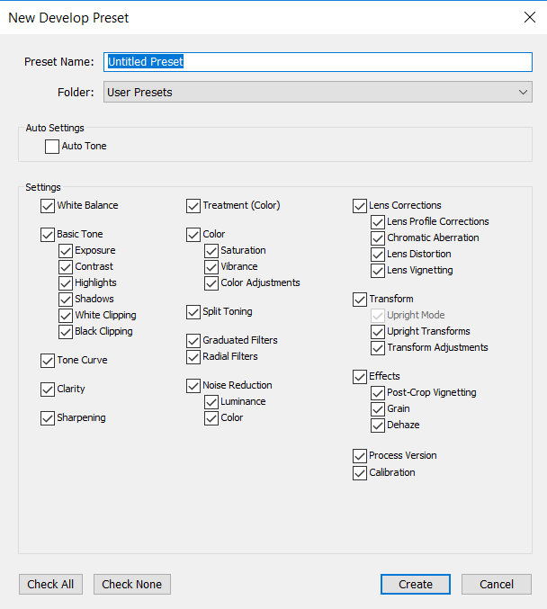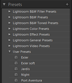 В Lightroom также есть очень удобная вещь, которая называется "Пресеты" (Presets). Это набор предустановленных настроек. У каждого фотографа есть какой-то свой базовый набор предустановок для тех или иных сюжетов, также пресеты очень удобно использовать для пакетной обработки группы файлов.