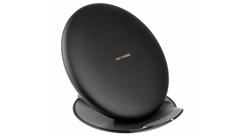 Такие зарядки располагаются под углом к подставке, и на них телефон ставится. Пример - зарядка от Xiaomi - есть выше. Также вот, например, беспроводная зарядка подобного типа от Samsung.