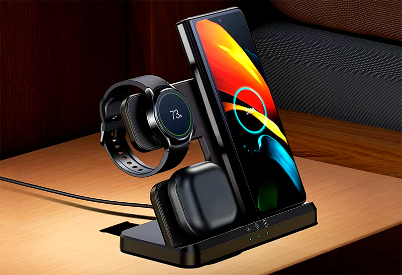Когда вы выбираете устройство "3 в 1", то там надо сначала выяснять, все ли в порядке с совместимостью, если вы планируете заряжать на них умные часы. Потому что если часы поддерживают стандарт Qi, то для них годится любая беспроводная зарядка, работающая по данному стандарту. Но, например, часы Samsung этот стандарт не поддерживают, и у них собственная беспроводная зарядка, которая для них подходит, но другие умные часы с беспроводной зарядкой от нее заряжаться не будут.