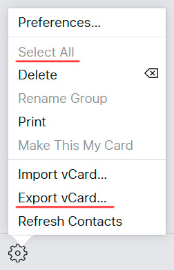 На ПК в браузере заходите в ваш iCloud. Там входите в контакты. Нажимаете на пиктограму настроек, там делаете Select All (выбрать всё) и дальше Export vCard (экспортировать в формат электронных визиток).
