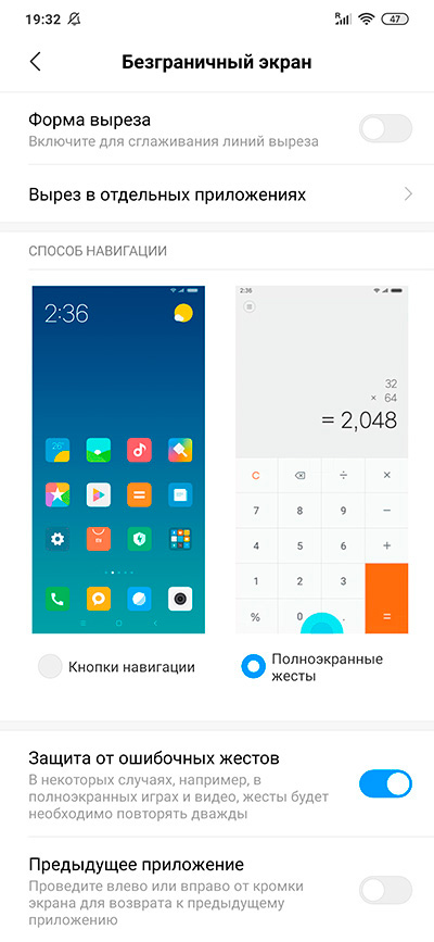 И только у смартфонов Xiaomi выбор режима управления почему-то засунут в пункт "Безграничный экран" - что называется, попробуйте с трех раз догадаться.