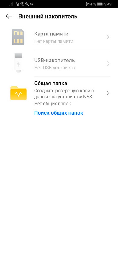 Программа может использовать карту памяти, внешний накопитель и сетевые папки.