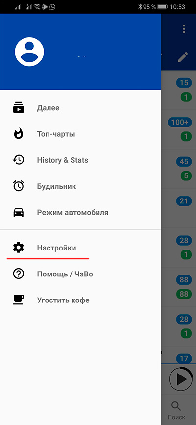 Если на смартфоне проигрывается аудиотрек, то в этой области появится плеер для управления воспроизведением.