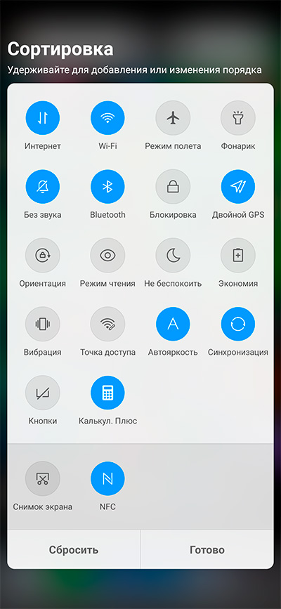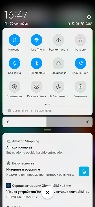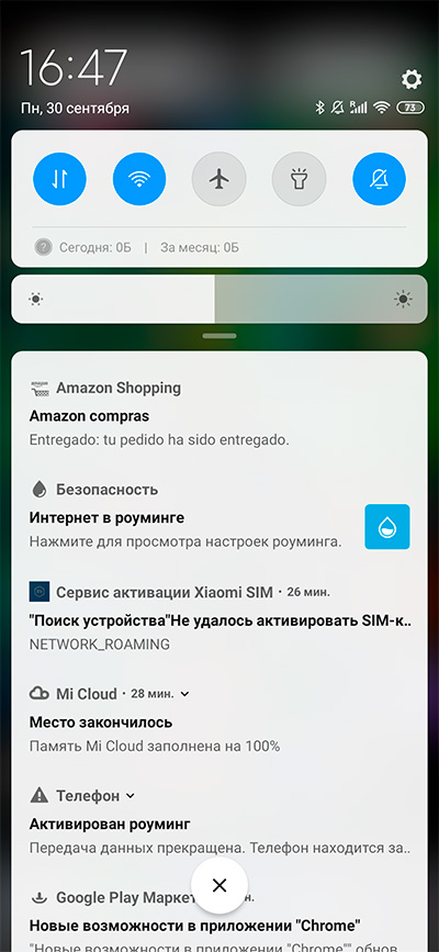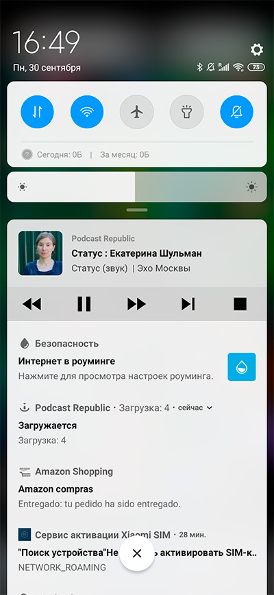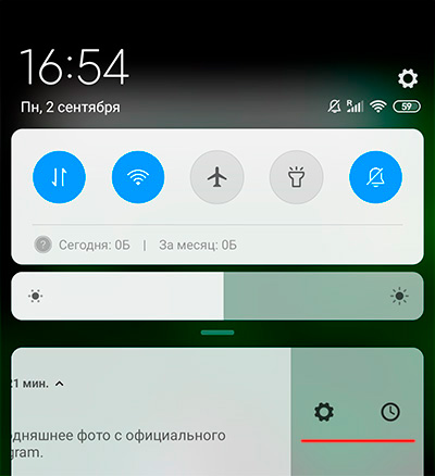 Область быстрых уведомлений раскрывается, если за нее потянуть пальцем. (Под ними почти всегда располагается полоса настройки яркости.) У одних смартфонов область раскрывается на полный экран, у других раскрывается не на полный экран, но позволяет пролистывать страницы.
