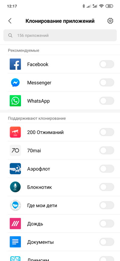 Также очень удобная возможность - клонирование приложений. Это чтобы вы могли использовать соцсети и мессенджеры с различными учетными данными без перелогинивания.
