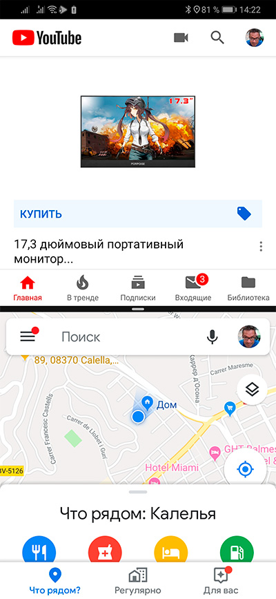 Андроидные смартфоны часто поддерживают возможность делить экран между двумя работающими приложениями, причем размер каждого приложения можно регулировать.