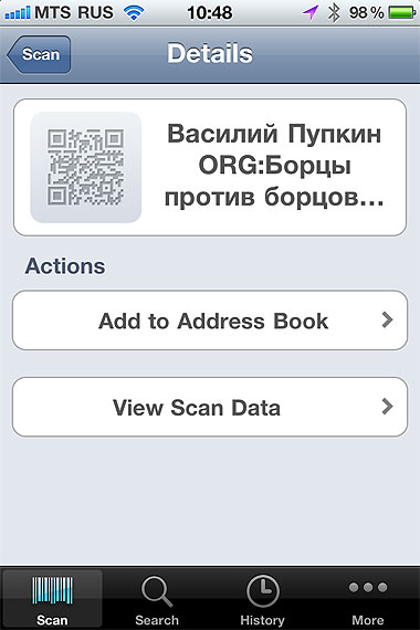 Вот спасибо, у меня оказывается в телефоне стоит программка NeoReader, а я и не знал для чего она.