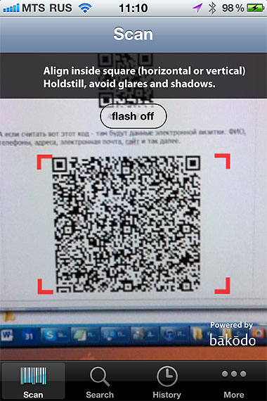 В чем смысл, спросите вы, кодировать информацию в каком-то квадратике? Не проще ли ее написать, а не кодировать? Нет, не проще! Как и в случае с товарными  штрихкодами (bar-code), кодирование информации в определенных графических символах позволяет удобно и быстро считывать эту информацию с помощью специальных сканеров. Вспомните, ведь кассиршам в магазинах теперь не приходится смотреть на ценник и вручную вбивать цену на кассе. Вместо этого они просто проносят товар штрихкодом, обращенным к сканеру, и данные считываются автоматически.