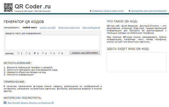 Там выбираете вид информации, вписываете данные, задаете желаемый тип кода - и получаете его в нужном виде.