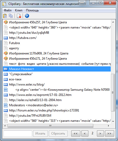 Ну и все, ClipDiary готова к работе. Теперь все, что вы отправляете в буфер обмена, по горячей клавише будет доступно в виде списка, откуда можно выбирать нужную запись и вставлять ее в нужное место (имеется в виду - в нужное место программы, конечно).