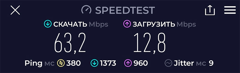Здесь тоже потребовалось подождать какое-то время, прежде чем активировался мобильный Интернет, но все заработало, скорости вполне нормальные.