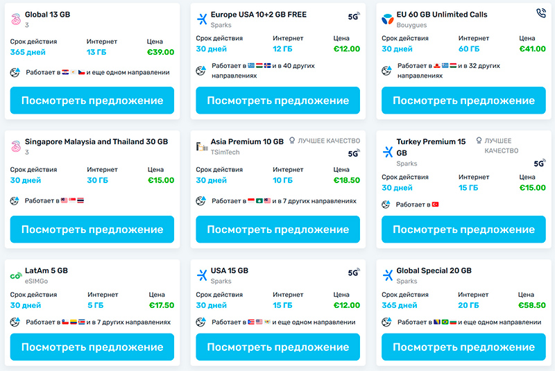 Ну и с распространением eSIM стали активно развиваться сервисы, предоставляющие самые разнообразные тарифные планы для мобильного интернета практически по всему миру.