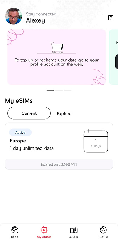 То есть у этого провайдера можно брать eSIM на длительный период и не забивать себе голову. У него удобное приложение, в котором видно, сколько потратили и сколько осталось, и, разумеется, в любой момент там можно докупить желаемый тариф. Более того, и это совсем интересно, если вы зайдете туда по вот этой моей реферральной ссылке, то вам бесплатно дадут eSIM с 500 мегабайтами - чисто на попробовать (и мне при этом тоже 500 МБ добавят, что нелишнее). Я, собственно, именно так себе эту eSIM для теста и установил - по реферральному коду от читателя. Так что попробуйте, денег не просят. Понравится - докупите нужный пакет.
