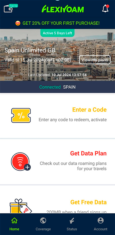 Провайдер FlexRoam. Он интересен тем, что предлагает как фиксированные планы, так и нелимитированные по дням.