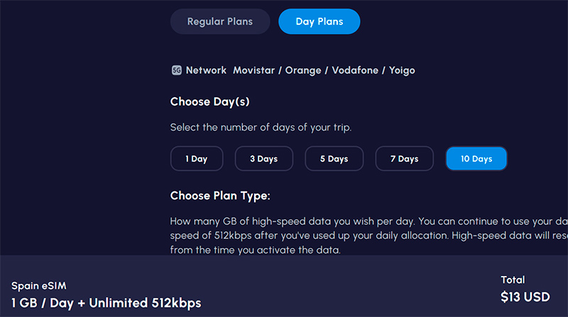 Например, по всей Европе - €6 в день, €34 за 10 дней - для анлима прям очень хорошо! Если считать использование по полной 2 ГБ в день, то 10 дней - 20 ГБ за €34. То есть анлим за €1,7 за гиг - это дешевле, чем фиксированные планы у многих провайдеров!