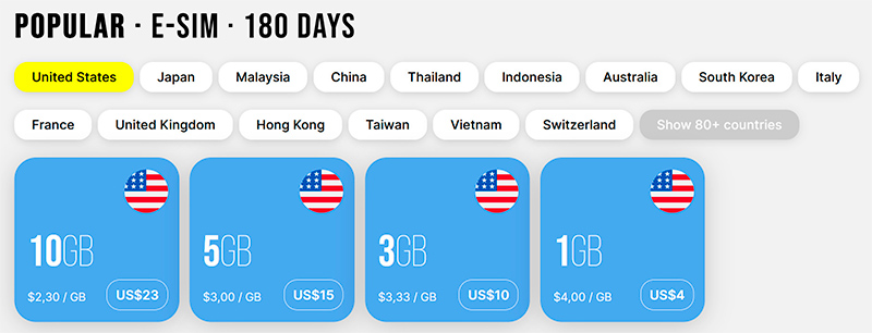 По Штатам тоже очень дешево. 100 ГБ на 90 дней всего за €68, например!